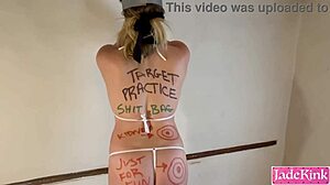 crazy husband writes kinky body fetish on bound submissive wife