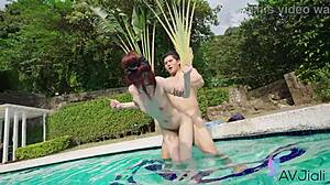 Hey instructor, fuck my shaved pussy hard by the pool!
