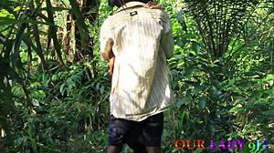 lucky african hunter bends over horny hairy ebony village girl doggystyle missionary creampie outdoors ranch
