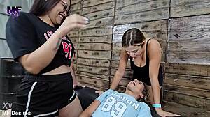 Stepmom and stepdaughter lick wet pussies with toys