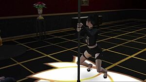 Animated goth lesbian threesome with blindfolded bondage and anal action
