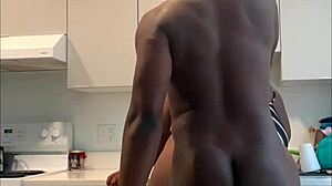 Young ebony mommy's small waist shakes in kitchen sex