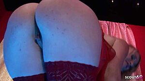 Jenny Welch teases her boyfriend with a lap dance in pantyhose until he rips them off.
