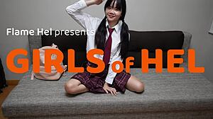 naughty student unpacks bag toys plugs her tight shaved holes