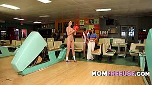 Stepmom and stepdaughter use my boyfriend freeuse style in the bowling alley outdoors