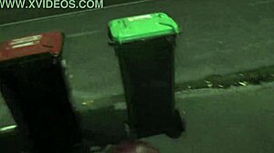 Trashy pierced milf submissive piss soaked on busy street taking rubbish out
