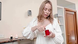 my beautiful brunette friend helps me relax with anal toys and licking
