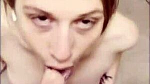 Sloppy Blowjob from Split Tongue Croatian Girl with Cumshot