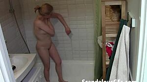 Bathroom Compilation: Skinny Amateur Cums Twice While Bathing, Cum Dripping Down Legs