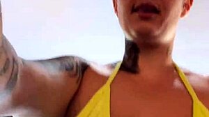 at the beach gym in transparent thong bikini piercing showing wet