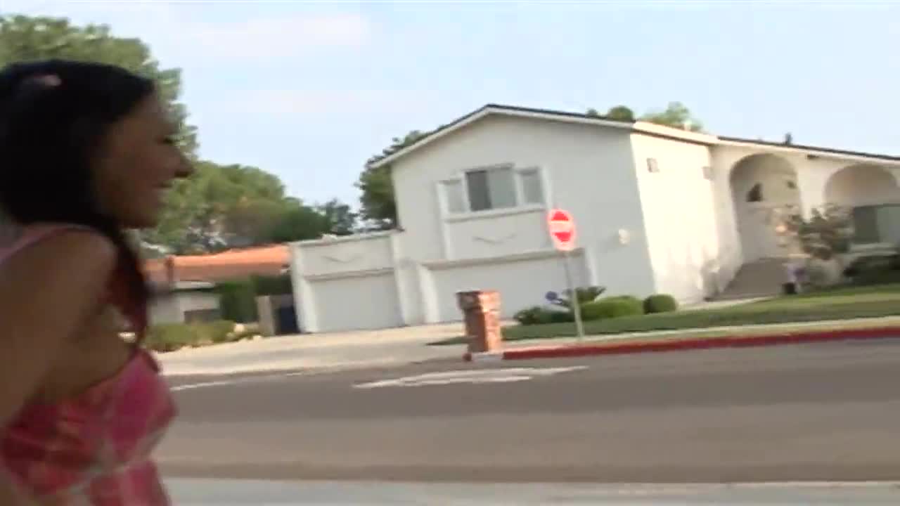 i, uh, got this petite teen with small tits to give me a blowjob and facial with her big cock.