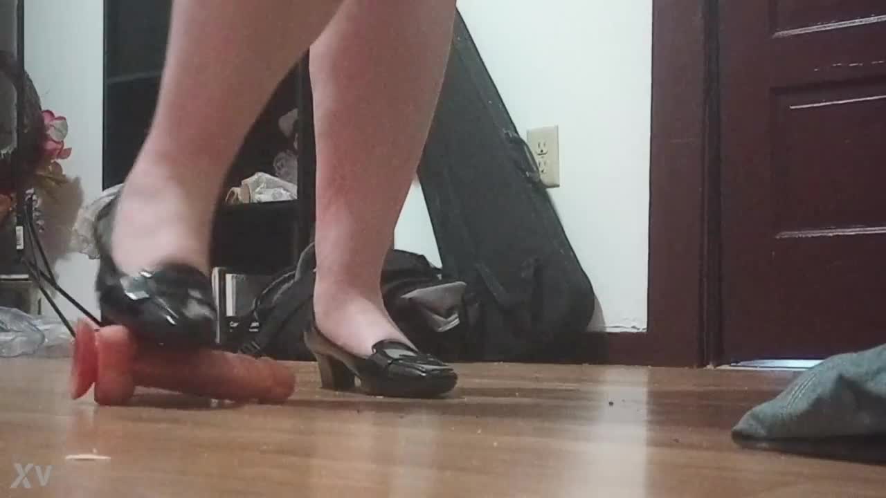 Lesbian Strapon Action in Ripped Pantyhose with Feet Fetish and High Heels